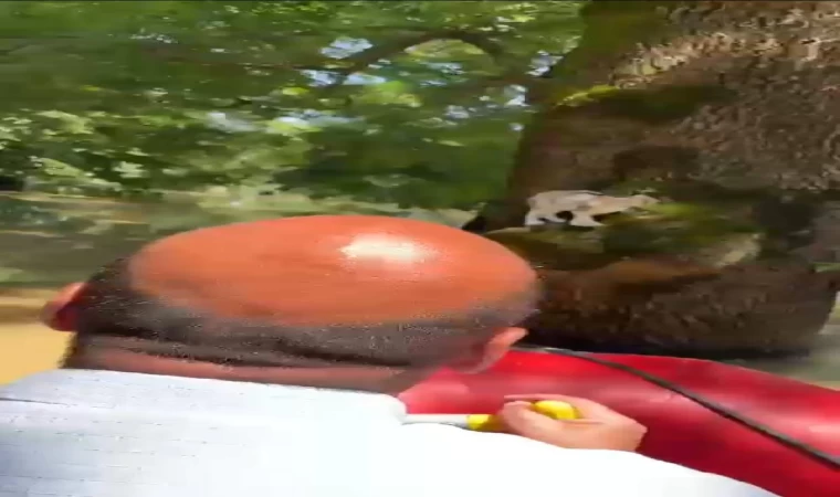 Selde, ağaçta mahsur kalan kediyi, botla dolaşan ekipler kurtardı