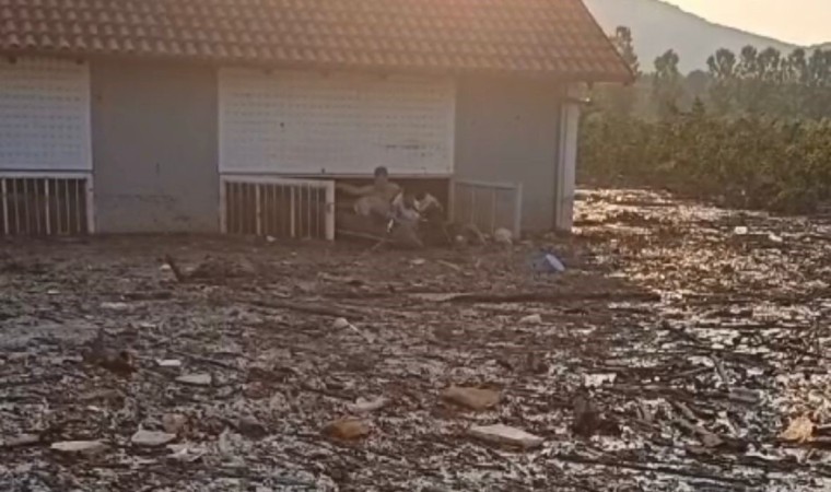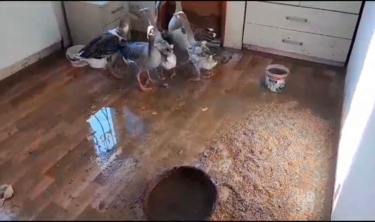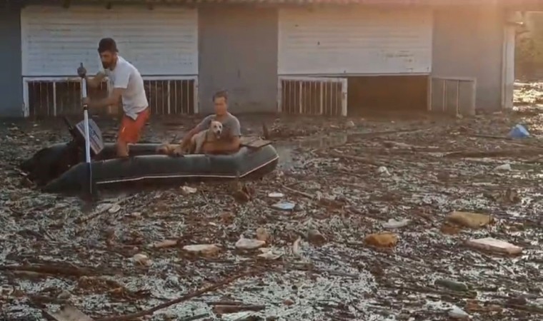 Hayvanları kurtarma çalışmalarını 3 gündür sürdürdüklerini dile getiren Emre Tunçok, "Köprübaşı Ömerefendi köyünün merasına botla giriş yaptık. Şu anda 2. kattayız. Burası 2 katlı bir çiftlik. Tavukları ve ördekleri bulup, buraya çıkarttık. Yemlerini verdik. Kazları da başka odaya aldık. Hayvanlar aç kalmışlardı. Yemlerini ve suyunu koyduk. Birinci katın çatısı sular altında. Çöpler, pislikler her şey burada toplanmış. Karşıda bir köpek bağırıyor. Ona ulaşmaya çalışacağız. Köpekleri sığındıkları yerden kurtardık. 2 köpeğimiz de burada. Köpeklerimizi kurtardık. 2 tane köpeği aldık karaya getirdik" ifadelerini kullandı.