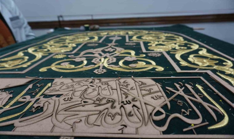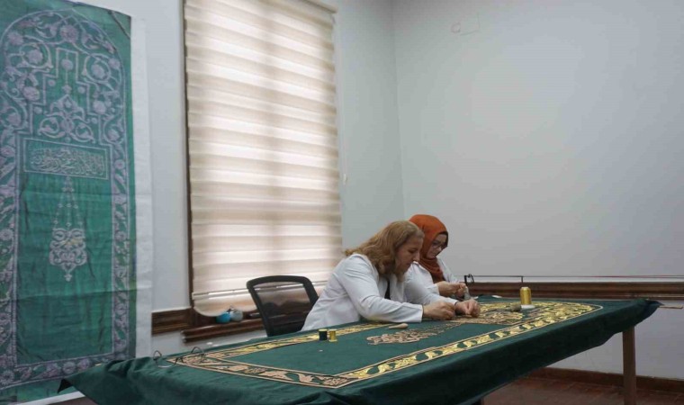 Edirne Olgulaşma Enstitüsü’nde ’Selimiye Camii’nden yansımalar’ teması çerçevesinde sim sırma tekniği kullanılarak caminin minber örtüsünü aslına uygun şekilde yenileniyor.