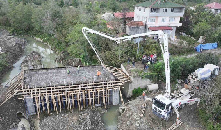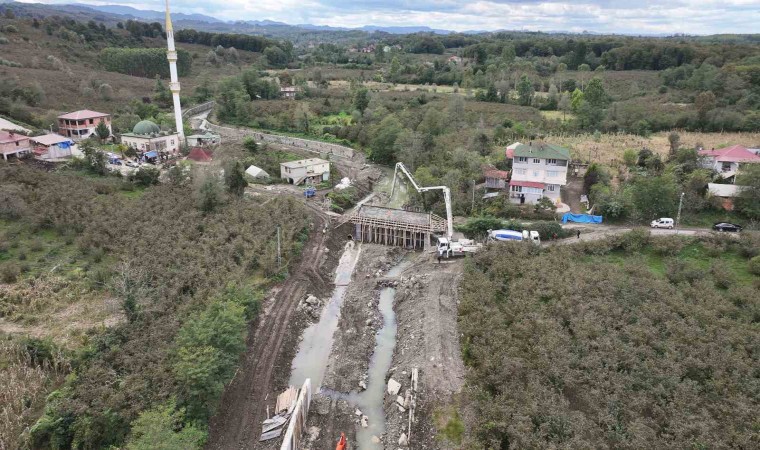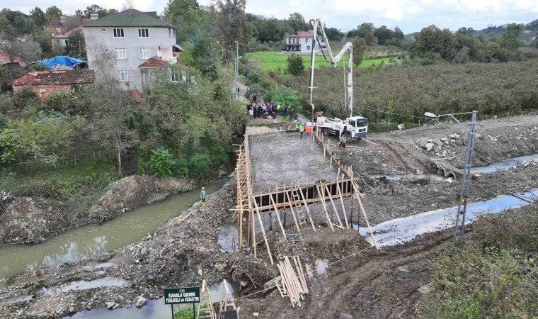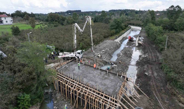 SAMSUN (İHA) – Samsun’un Terme ilçesinde sel felaketinin ardından yıkılan Bazlamaç Mahallesi Karagöl mevkisindeki köprünün yapımında sona yaklaşılıyor.