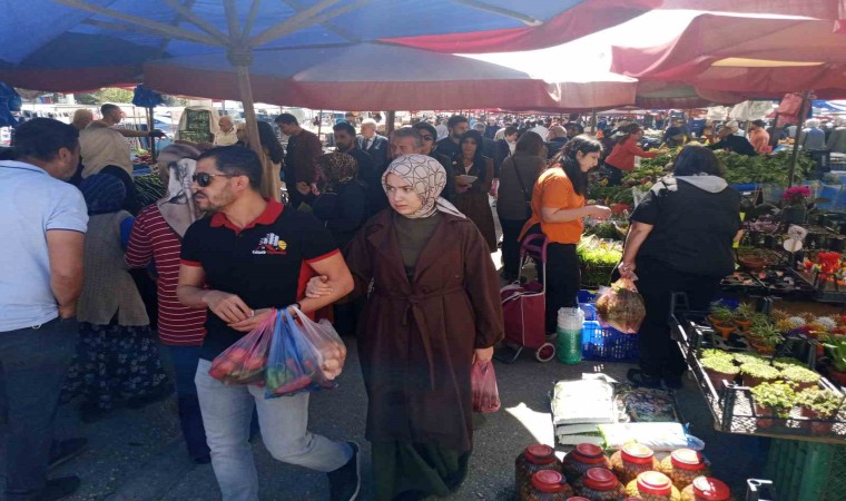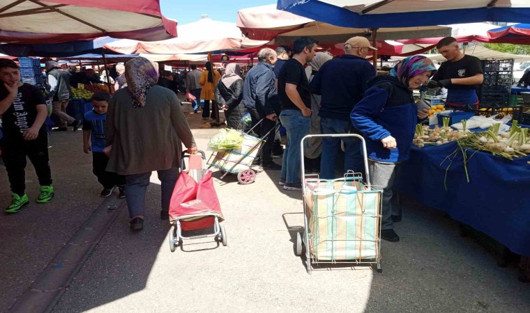 Eskişehir’de Ramazan Bayramı’nda şehir dışına çıkmayarak evinde misafir ağırlamak üzere hazırlık yapan vatandaşlar semt pazarlarında yoğunluk oluşturdu.