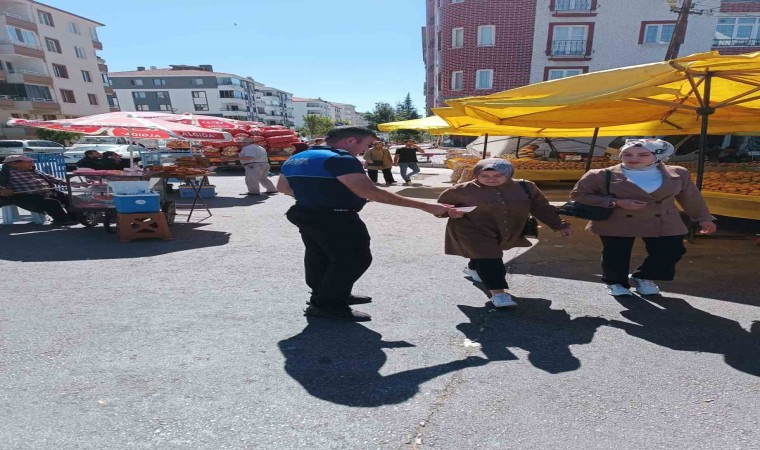 Semt pazarlarında denetimlerini aralıksız sürdüren zabıta ekibi, vatandaşlara da bilgilendirme broşürleri dağıtıyor. Vatandaşlardan, çürük ve eksik gramajlı ürün satışı yapan esnafın tezgâh numarasını pazar yerlerinde bulunan zabıta karakoluna bildirmeleri istendi.