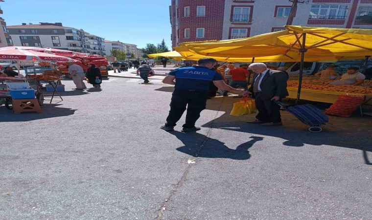 Çorum Belediyesi zabıta ekipleri semt pazarlarında çürük ve eksik gramajlı sebze-meyve satışı konusunda esnafı ve vatandaşları bilgilendirmeye devam ediyor. Semt pazarlarında denetimlerini sıkılaştıran ekipler, kurallara uymayan esnafa yasal işlem yapılacağını bir kez daha hatırlattı.