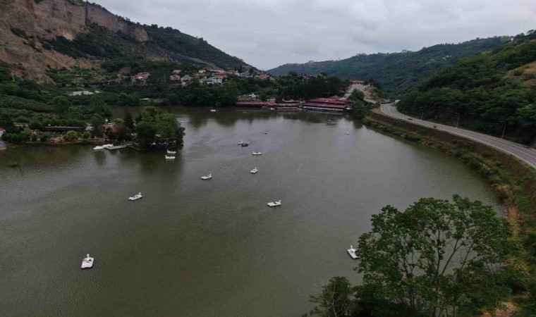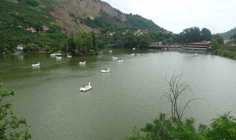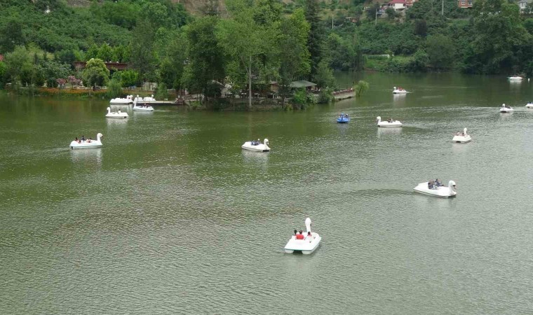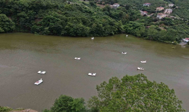 Trabzon’un Akçaabat ilçesi Yıldızlı Mahallesi’nde yeşil bir vadinin içinde yer alan Sera Gölü, Arap turistlerin gözdesi haline geldi. Göldeki deniz bisikleti yoğunluğu ise dikkat çekiyor.