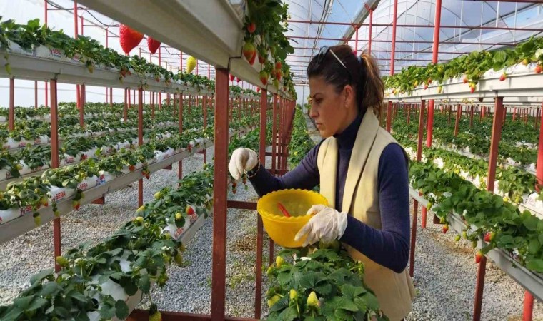 Aydın’ın Söke ilçesinde çilek ürettiği serasında Söke’nin ilk çilek ihracatçısı olmayı başaran kadın üretici Nilgün Ünsel, hedefini büyüterek sektöre başka üreticiler kazandırmak istiyor.