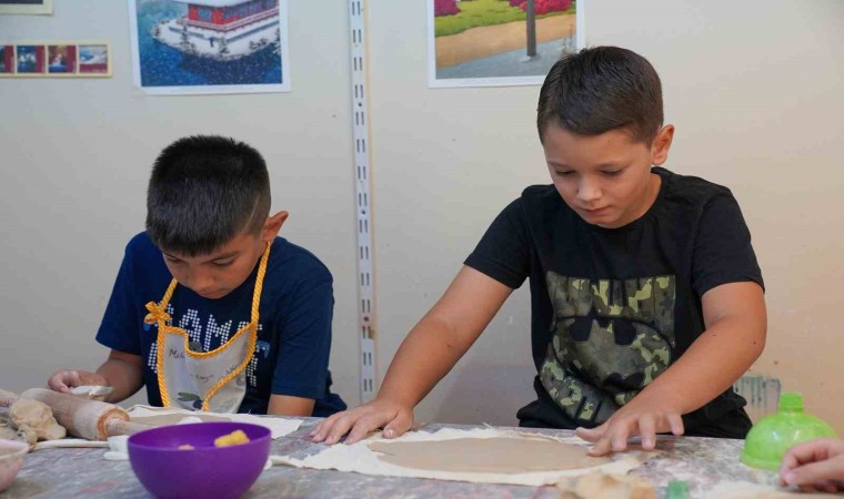 Tepebaşı Belediyesi’nin çocuk kursları, farklı merkezlerde çocukların katılımı ile devam ediyor. Özdilek Sanat Merkezi’nde gerçekleştirilen yaz kursları da yoğun katılım ile sürüyor. Düzenlenen seramik kursu haftanın 4 günü 8-14 yaş arası 16 grupta toplam 100 çocuğun katılımıyla gerçekleşiyor. Çocuklar, uzman eğitmenler gözetiminde elle seramik şekillendirme yöntemlerini öğreniyor. Seramikten hayvan ve insan figürleri, çanak ve çömlekler, vazolar, kalemlikler, duvar süsleri ve yenililçi çalışmalar yapan öğrenciler, sanat ile tanışırken yenilikçi ve farklı düşünme gibi yönlerini de geliştirmiş oluyor. Seramik kursuna giden çocuklar, seramiği çok sevdiklerini belirterek, “Burada ortam güzel. Hem seramik yapıyoruz hem de eğleniyoruz. Burası el becerimi artırıyor. Yaz tatilimizi burada değerlendiriyoruz. Zamanımız güzel geçiyor, bizim için güzel aktiviteler oluyor” dedi.