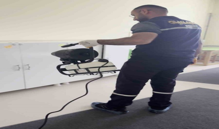 Özel dezenfektan ürünlerin kullanıldığı uygulamada elle temas edilen bütün alanlar ilaçlanarak titiz bir şekilde temizlendi. Temizlik İşleri Müdürlüğü tarafından yapılan açıklamada; öğrencilere daha sağlıklı ve hijyenik eğitim ortamı sunmaya yönelik yapılan dezenfekte çalışmasına aralıksız olarak devam edileceği bilgisi verildi.