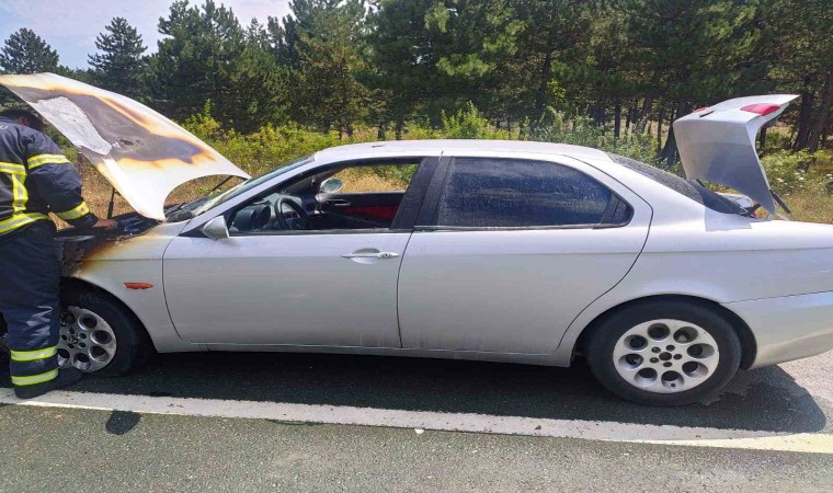 Karabük’te bir otomobil yolda seyir halinde iken motor kısmından alev aldı. Otomobildekilerin denize gitmek için yola çıktıları öğrenilirken, motor kısmından alev alan otomobilde maddi hasar oluştu.