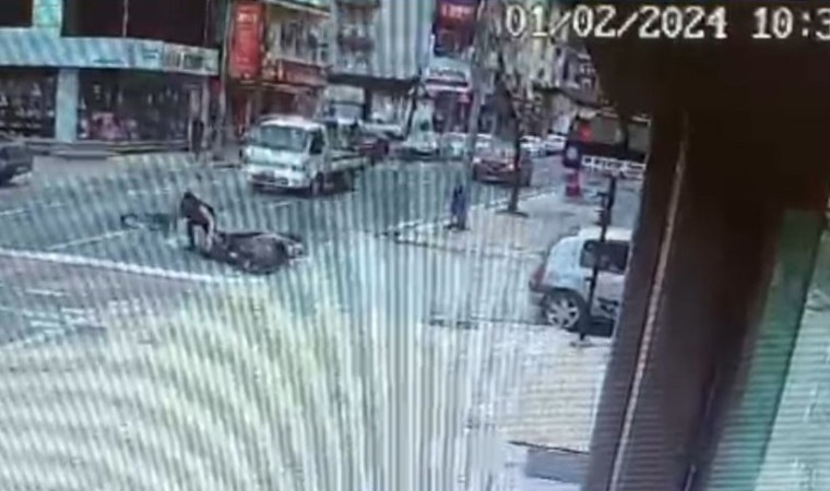 DÜZCE(İHA) – Düzce kent merkezi Eski Bolu Caddesi üzerinde şerit değiştiren bisikletli ile motosiklet çarpıştı. Kazada her iki araç sürücüsü savrulurken 2 kişi yaralandı. Kaza anı işe bir işyerinin güvenlik kamerasına böyle yansıdı.