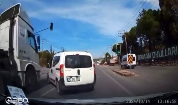 Bursa’da sola dönüş yapmak için anayolda şerit değiştiren hafif ticari araca tır çarptı. Kontrolden çıkan tır elektrik direğine çarpıp devrilirken, kameralara yansıyan kazada 2 kişi yaralandı.