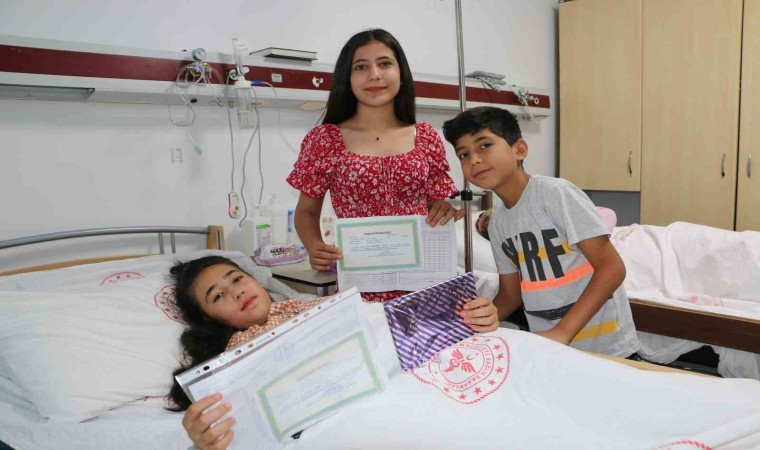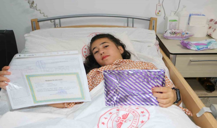 Karnesini almak için hazırlanan Esilla, takılan serumunun bitmesiyle birlikte okula gidecekken, öğretmenlerini hastanedeki odasında görünce sevinçle duygusal anlar yaşadı. Teşekkür belgeli karnesini öğretmenlerinden alan Esilla, kendilerine çok teşekkür ederek hastaneden sağlıklı bir şekilde taburcu olmayı beklediğini söyledi.