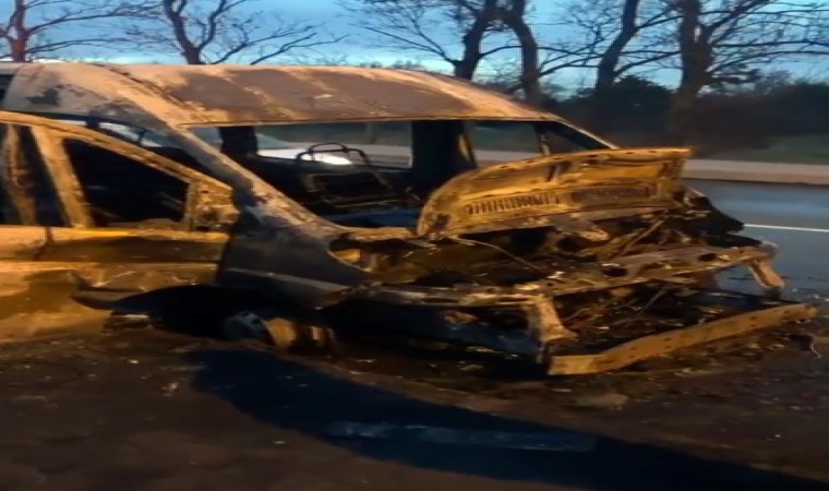 Hadımköy’de seyir halindeki servis minibüsü henüz bilinmeyen bir nedenle alev topuna döndü. Korku dolu anlar vatandaşların cep telefonu kamerasıyla kaydedildi.