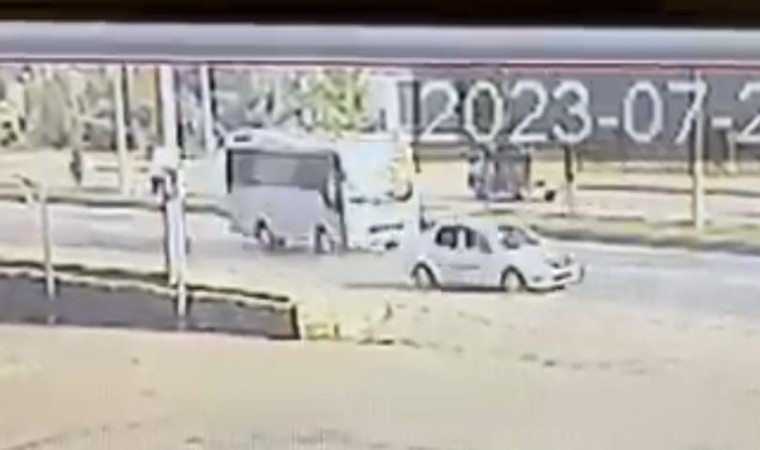 Bursa’nın İnegöl ilçesinde servis otobüsü ile otomobilin çarpışması sonucu meydana gelen kazada 1 kişi yaralandı. Kaza anı güvenlik kamerasına yansıdı.