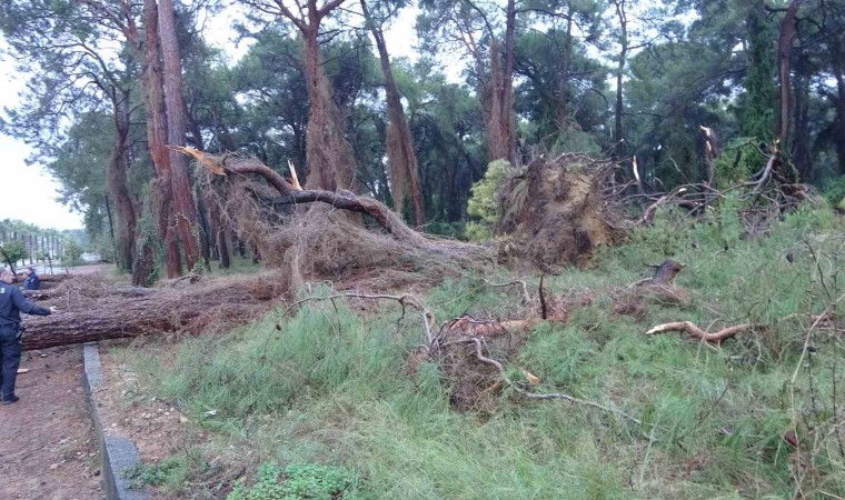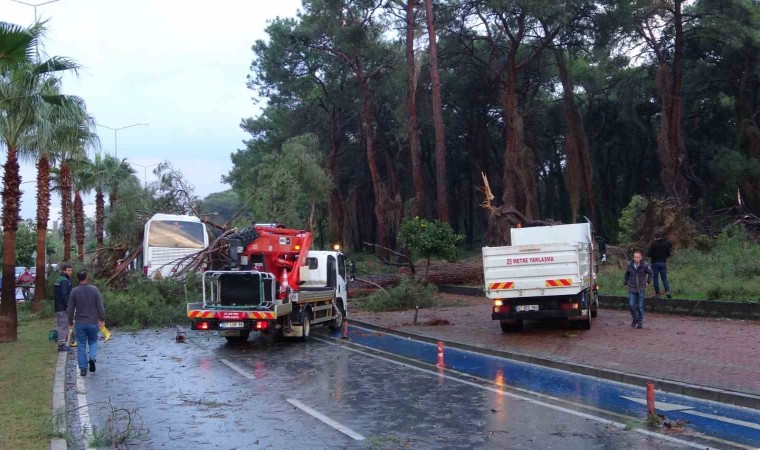 Yağmur ve şiddetli rüzgar Manavgat’ta dün gece saatlerinden itibaren etkili oldu. Sabah saat 07.00 sıralarında Sorgun Çamlığı’nda birçok çam ağacı rüzgarın etkisiyle kırıldı veya devrildi. Devrilen çam ağaçları Titreyengöl Caddesi’nde yolun tamamen kapanmasına neden oldu. Olay yerine çok sayıda ambulans, trafik ve polis ekibi sevk edilirken, polis ekipleri yolda başka kazaların yaşanmaması için önlem aldı.