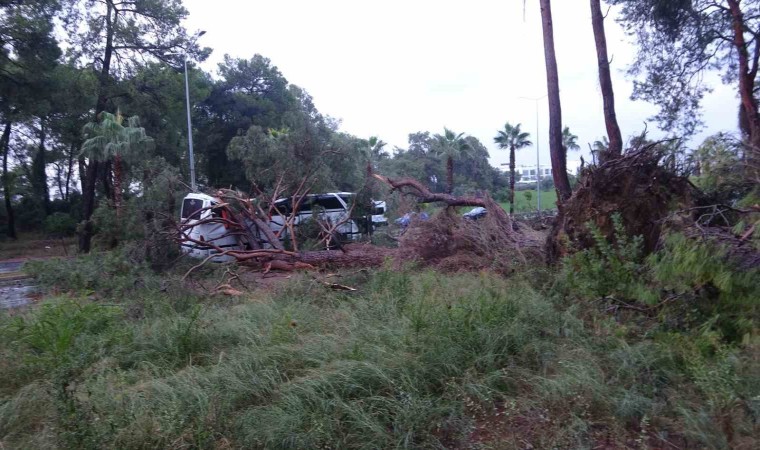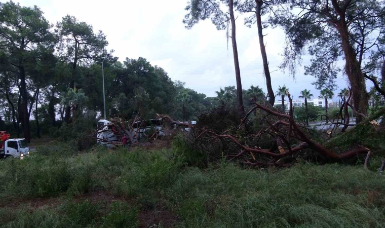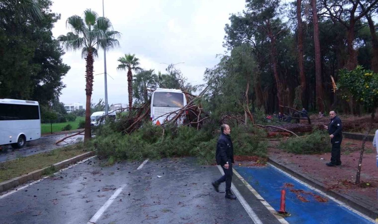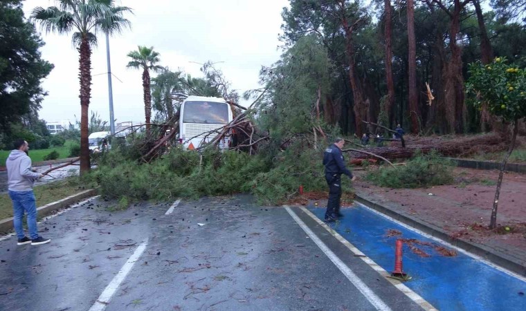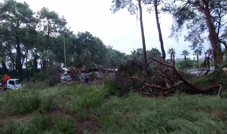 Kökünden sökülerek yola devrilen ağaçlardan bir tanesi otele gitmekte olan Soner Sümer’in kullandığı 07 J 74969 plakalı otel servisinin üzerine devrildi. Devrilen ağaç nedeniyle servis otobüsünün çatısı çökerken, serviste yolcu olarak bulunan 40 otel çalışanından 7’si yaralandı. Yaralılar 112 sağlık görevlilerinin olay yerindeki müdahalelerinin ardından hastaneye kaldırıldı. Yaralıların hayati tehlikelerinin bulunmadığı bildirildi.
