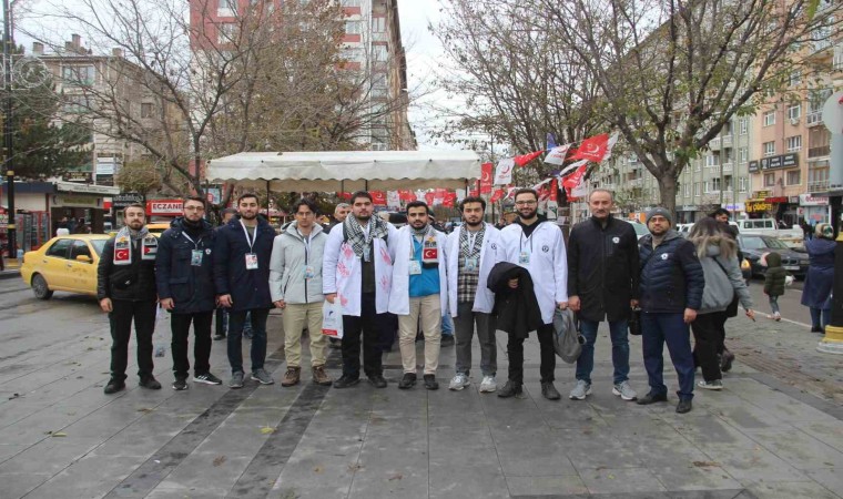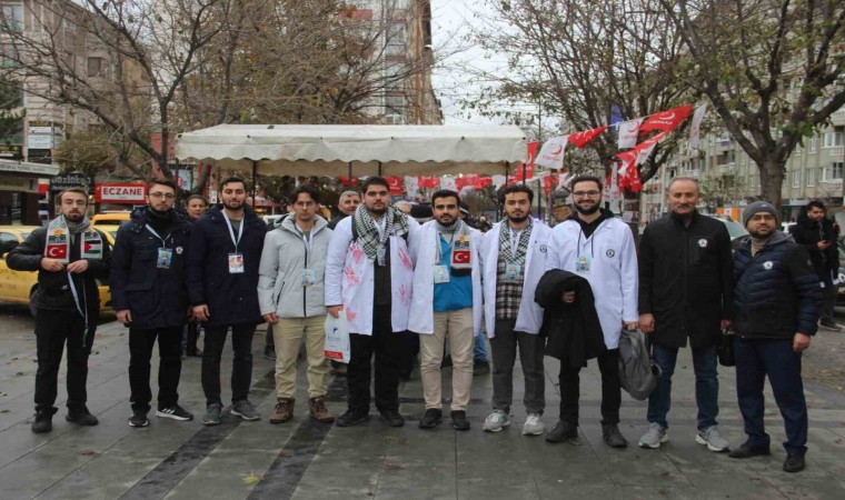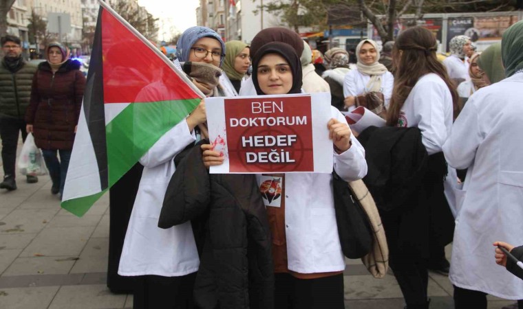 Basın açıklamasında bulunan Tıp Fakültesi son sınıf öğrencisi Mustafa Kılıç, İsrail savaş suçlusu olduğunu söyleyerek, "İşgalci İsrail’in Filistin’de yıllardır devam ettirdiği sistematik işgal ve zulüm 7 Ekim’den buyana soykırımdan başka ifadeyle anlatılamayacak boyuta ulaşmakta ve Gazze’de sivil; hasta, hekim, çocuk ve kadın fark etmeksizin büyük katliam bütün dünyanın gözü önünde devam etmektedir. İnsan hakları ve uluslararası hukuk kuralları açıkça ihlal edilerek binlerce sivil, kadın ve çocuk acımasızca katledilmiştir. Ayrıca tıbbi malzemelerin temini ve sağlık hizmetlerinin sunumu da engellenerek küvezdeki bebeklerin dahi ölümüne neden olmuştur. Hekimler olarak İsrail’in saldırılarına karşı tepki göstermeye, Gazze’de ki sivillerin, kadınların, çocukların ve meslektaşlarımızın ve hastaların hayatlarının korunması adına hekimlik mesleğine yakışır bir durum ortaya koymakta kararlıyız. Bu hafta sessiz yürüyüşümüz İstanbul, Ankara, İzmir, Bursa, Sivas başta olmak üzere 20 il de eşzamanlı olarak düzenlenmektedir. Başta Dünya Sağlık Örgütü olmak üzere dünyada ki tüm hekim, sağlık çalışanları ve vicdanlı insanları harekete geçmeye çağırıyoruz. Ayrıca tüm meslektaşlarımızı yapılan zulme açıktan desteğini bildiren ilaç firmalarını boykot etmeye davet ediyoruz. Normalleştirmeyeceğiz. Asla sindirmeyeceğiz. Sabırla ve azimle hekimler olarak zulme karşı duranlar olacağız. Bu onurlu yürüyüşte yer alıp zulme karşı durmak adına her birinizi sessiz yürüyüş kervanımızda ses olmaya davet ediyoruz. Tüm dünyaya İsrail savaş suçlusu olarak ilan ediyoruz" ifadelerine yer verdi.
