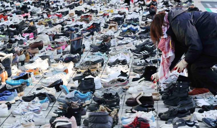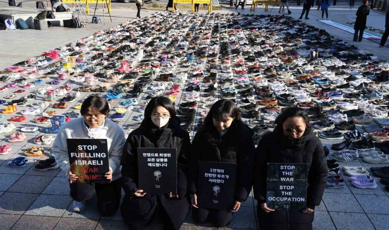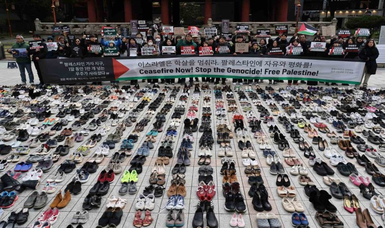 İsrail’in Gazze Şeridi’ne 42. gündür sürdürdüğü saldırılara uluslararası kamuoyunun tepkisi devam ediyor. İsrail’in saldırıların hayatını kaybedenler için Güney Kore’nin başkenti Seul’ün merkezindeki bir meydana 2 bin çift ayakkabı konuldu. Aktivistler tarafından gerçekleştirilen etkinlikte Gazze’de derhal ateşkes ilan edilmesi çağrısı yapıldı. Aktivist Han Soo-young, "75 yıldan fazladır İsrail işgali sırasında Gazze Şeridi, Batı Şeria’da öldürülenleri simgeleyen ayakkabıların önünde duruyoruz. Bu ayakkabılar ölümlerin sadece rakamlardan ibaret olmadığını gösterecek" ifadelerini kullandı.