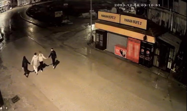 Eskişehir’de gece saatlerinde bir büfenin önüne el ele tutuşarak gelen 2 çiftin, kilitli olan dolabı açarak içecek çalma anları saniye saniye güvenlik kamerasına yansıdı.
