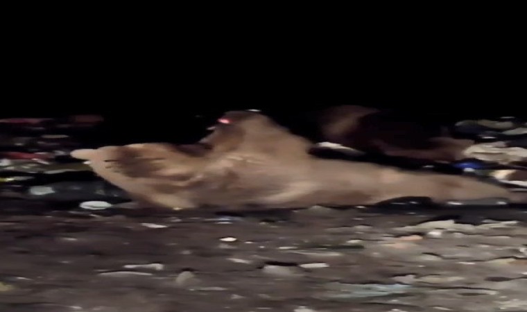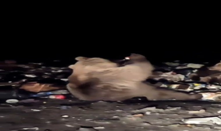 Kars’ın Sarıkamış ilçesinde çöplükte bulduğu gazlı içeceği sırt üstü yatarak içen boz ayı anbean kameralara yansıdı.
