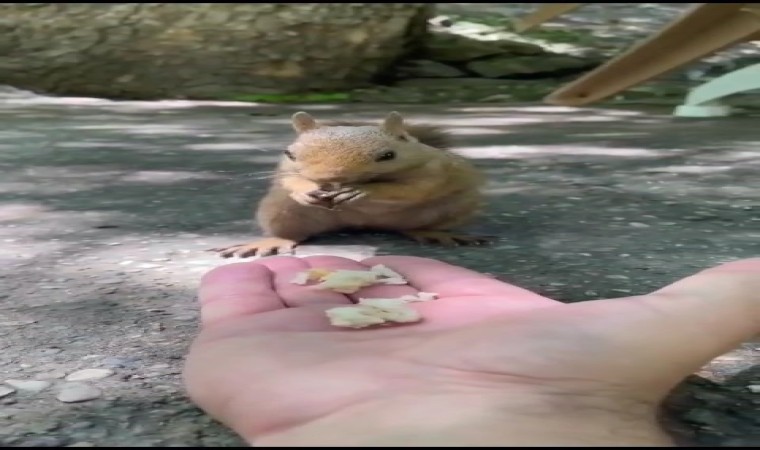 Piknik yaparken sevimli bir sürprizle karşılaştıklarını aktaran Ali Özdemir, "Doğayla baş başa kalmak için Halbori Gözelerine gittik. Yanımıza sevimli bir sincap geldi. Yabani bir hayvan olduğu için bizden uzaklaşacağını düşündük. Fakat sincap düşündüğümüzün aksine yanımıza geldi. Onu avucumuzda besledik. Sincap günümüze renk kattı" dedi.