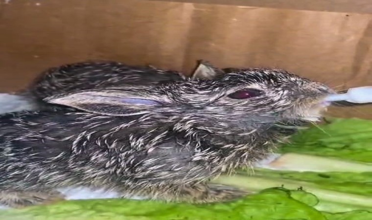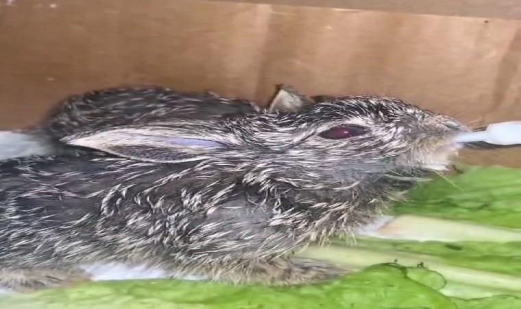 Erzurum’da Karayolları ekiplerince doğada sahipsiz halde bulunan iki yabani tavşan yavrusu şimdi güvenli ellerde büyüyor.