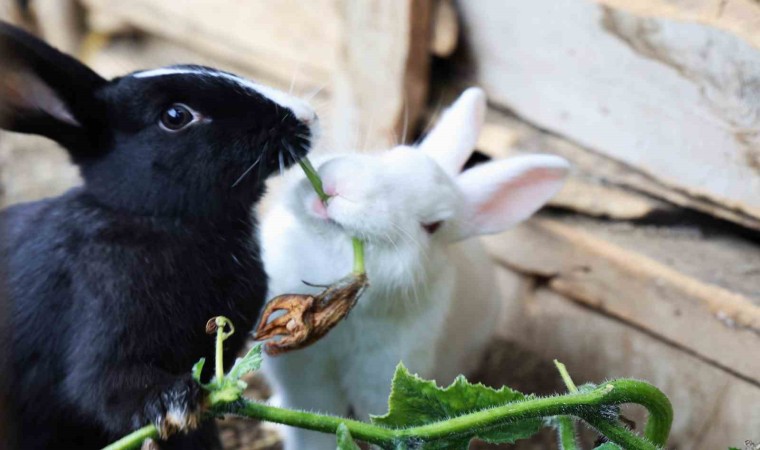 Elazığ’da sevimlilikleriyle göz kamaştıran tavşanların ot ziyafeti fotoğraf karelerine yansıdı.