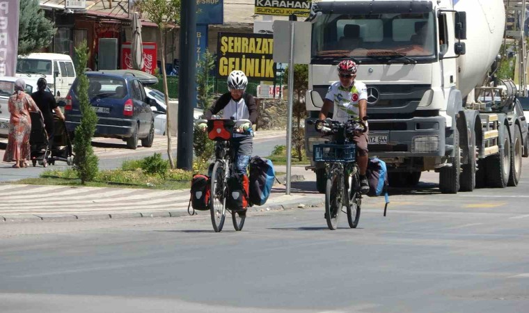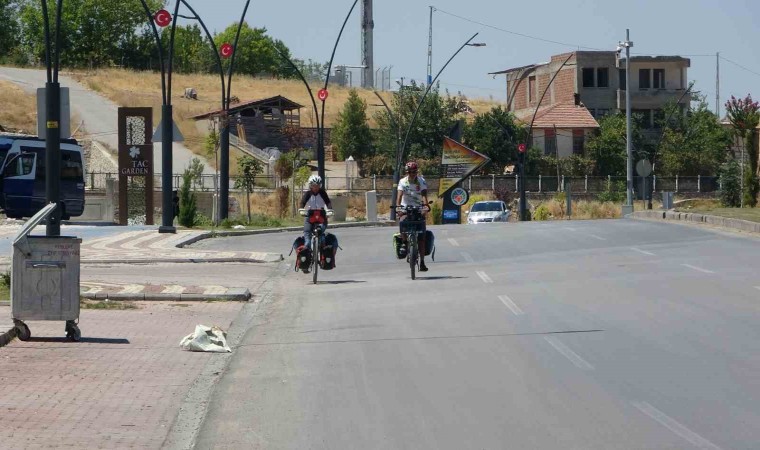 9 yıldır bisiklet kullandıklarını belirterek son üç yıldır ise Türkiye’yi gezdiklerini aktaran Mehmet Kırkıcı, ” Bisikletle Türkiye turu yapıyoruz. 9 yıldır bisiklete biniyoruz. Son üç yıldır ise Türkiye’yi turluyoruz. Bu yıl ki turumuz aslında Avrupa olacaktı. Ama vize için randevu alamadık. Böyle olunca Türkiye’de kalarak Iğdır’a kadar gidelim oradan da geri dönüş yaparız düşüncesiyle yola çıktık. Ankara, Derinkuyu ‘yu dolaştıktan sonra Develi üzerinden Elazığ’a geldik. Daha sonra Bingöl, Muş, Ağrı Doğubeyazıt üzerinden Iğdır’a ulaştık buradan da Tatvan, Muş üzerinden Malatya’ya geldik. Deprem yaşamış Malatya’ya daha önceleri de gelmek istemiştik ama olmadı, ziyareti bu yıl gerçekleştirebildik. Buradan sonra Ihlara vadisine geçerek belirli bir rota sonrası İstanbul’a ulaşacağız. Şuana kadar yapmış olduğumuz yol 3 bin 150 kilometreyi aştı. Tahmini yolumuzun 5 bin kilometreyi aşacağını düşünüyoruz. 115 gün önce 23 Nisan’da yola çıkmıştık” dedi.