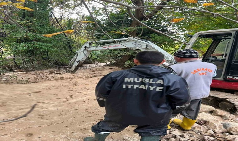 Muğla’nın Seydikemer ilçesinde şiddetli yağış nedeniyle taşan derede mahsur kalan hayvanlar ekiplerin çabasıyla kurtarıldı.