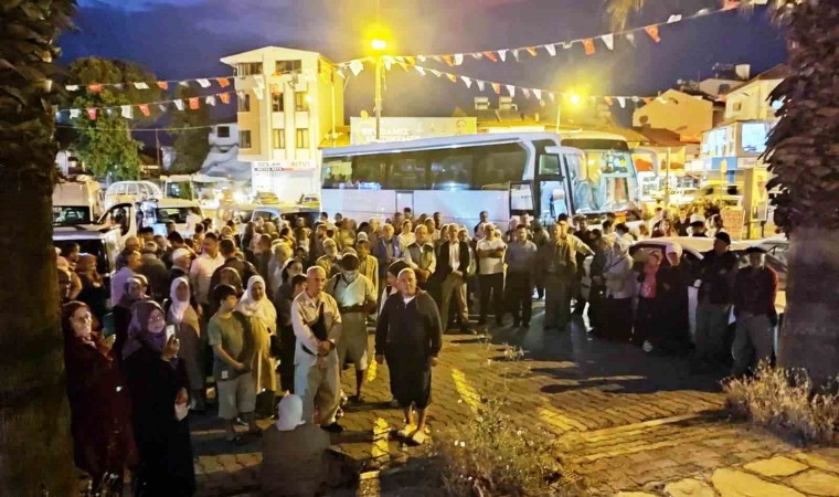 Muğla’nın Seydikemer ilçesinde hacı adayları, duygusal anlar eşliğinde kutsal topraklara yolculuğa çıktı.