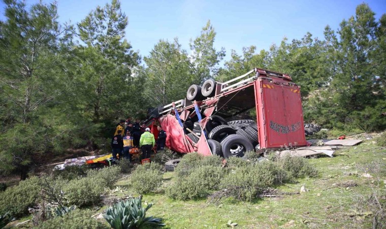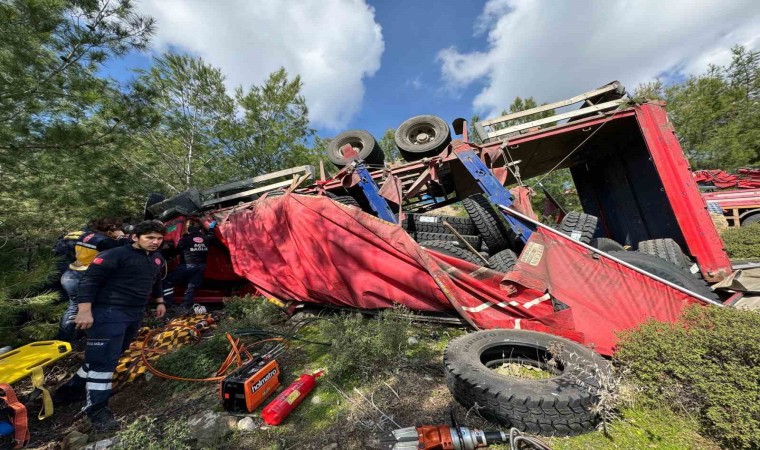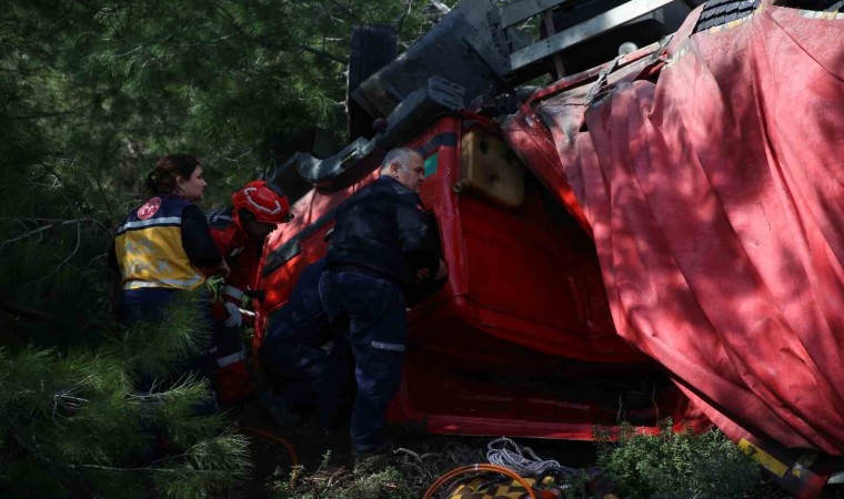 Muğla’nın Seydikemer ilçesinde kaza yapan lastik yüklü kamyonda sıkışan sürücü itfaiye ekipleri tarafından kurtarıldı.