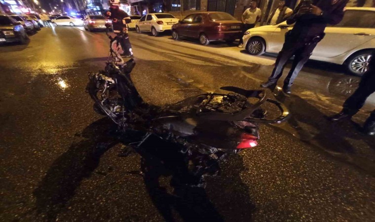 Aydın’ın Efeler ilçesinde meydana gelen olayda seyir halindeki motosiklette çıkan yangın panikletirken, motosiklet demir yığınına döndü.
