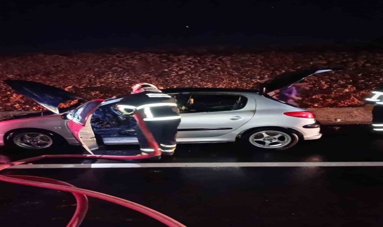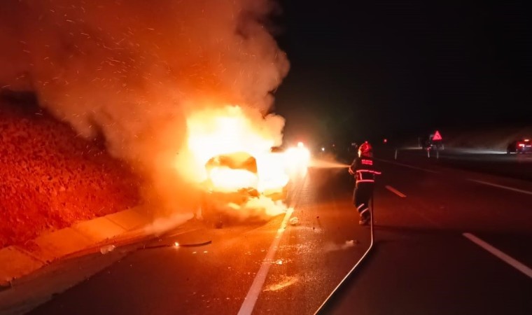 Bilecik’te dün gece seyir halinde bir anda alevler yükselen otomobil cayır cayır yandı.