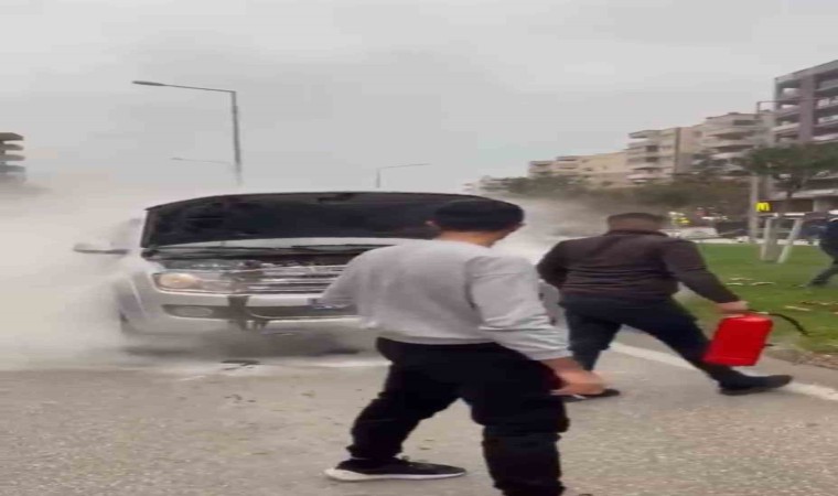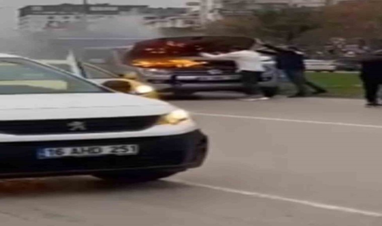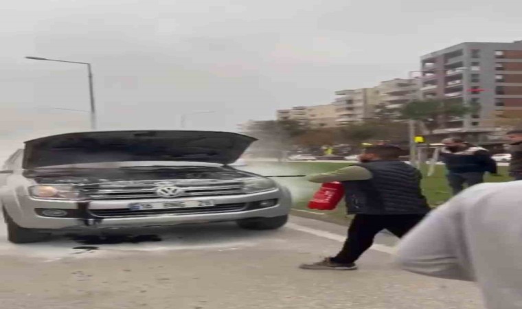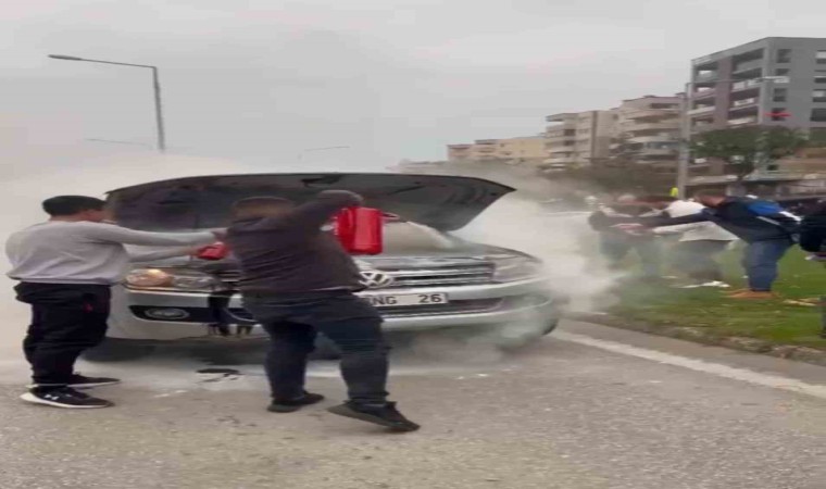 Olay, merkez Nilüfer ilçesi Fatih Sultan Mehmet Mahallesi mevkiinde meydana geldi. Cadde üzerinde seyir halindeki otomobil sürücüsü, aracın motor kısmından dumanların yükseldiği görünce hemen frene bastı. Araçtan hızla aşağı inen sürücü kaputu açtığında aracın yandığını gördü. Durum üzerine trafikteki diğer sürücülerde yanan araca müdahale etmek için eline aldıkları yangın tüpüyle alevleri söndürdü. Korku dolu anlar kameraya yansırken, olayla ilgili tahkikat başlatıldı.