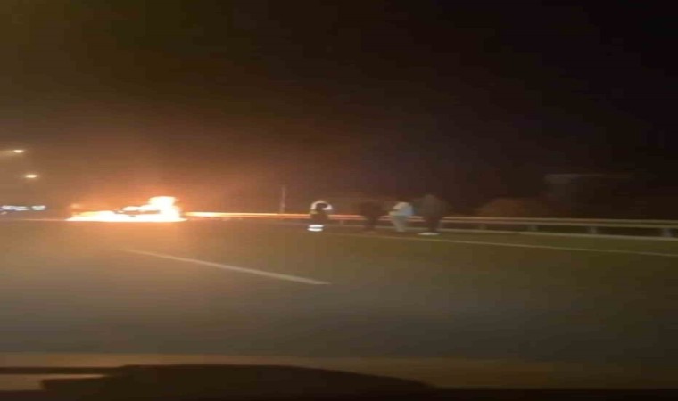 Bursa-Gemlik Yolu üzerinde meydana gelen olayda, seyir halindeki bir otomobil motor bölümünden arıza yaparak alev aldı. Sürücü, çıkan duman ve alevleri fark eder etmez aracı sağ şeride çekerek durdu.