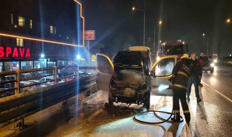 Kocaeli D100 Karayolunda seyir halinde olan hafif ticari araç alevlere teslim oldu. Yangını itfaiye söndürürken araçta büyük hasar oluştu.
