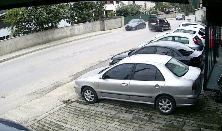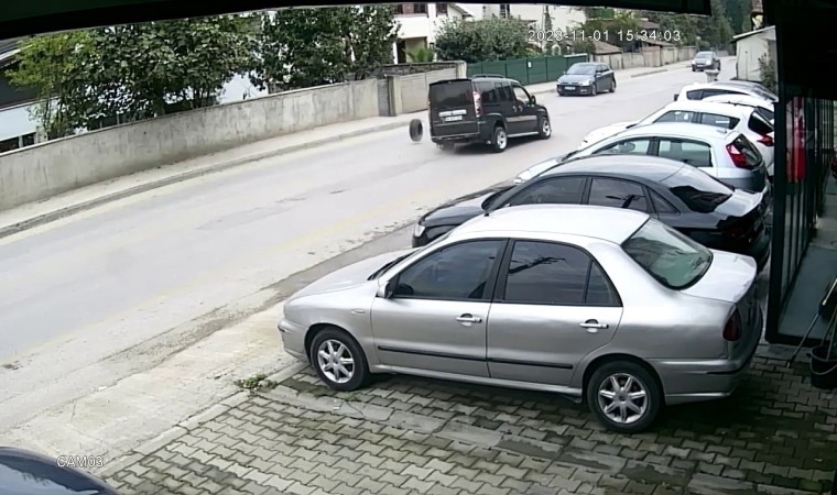 Sakarya’nın Akyazı ilçesinde hafif ticari aracın kopan tekerinin karşı yönde seyir halinde olan otomobile çarptığı anlar güvenlik kamerasına yansıdı.