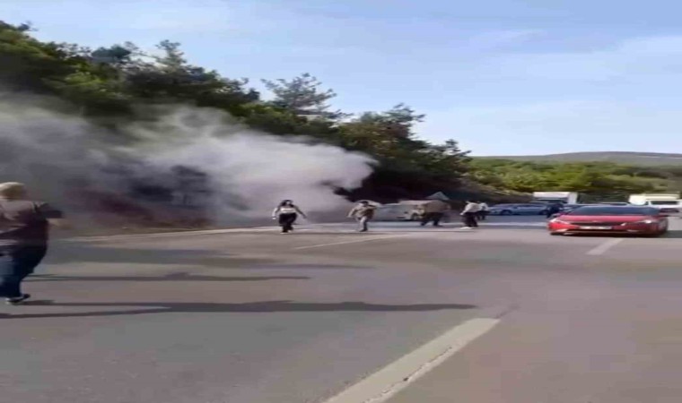 Olay, Bursa-Gemlik Yolu Dürdane mevkiinde meydana geldi. Edinilen bilgiye göre, seyir halindeki otomobiliyle seyir halindeki sürücü, aracın motor kısmından dumanların çıktığını görünce emniyet şeridine yanaştı.