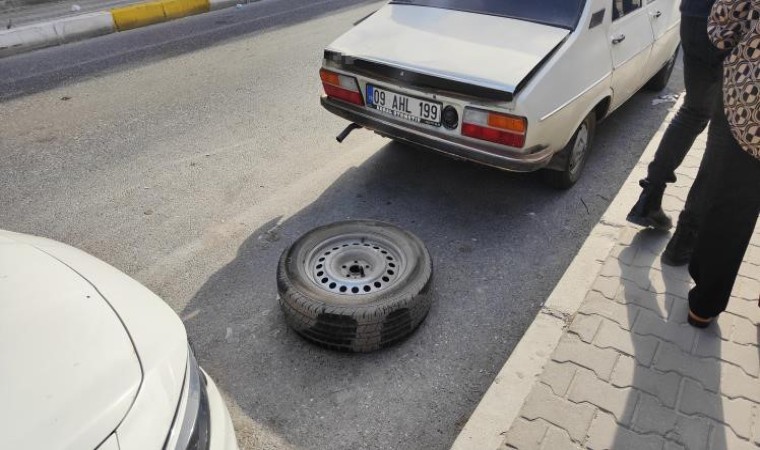 Olay, dün saat 15.00 sıralarında Turgut Özal Bulvarı’nda meydana geldi. Edinilen bilgiye göre, Kuşadası’ndan Söke istikametine giden pikaptan fırlayan lastik, demir bariyerleri aştıktan sonra alt yola düştü. Lastik bu sırada önce alt yolda kırmızı ışıkta bekleyen motosiklet sürücüsünü, daha sonra da kaldırımda yürüyen bir yayayı teğet geçti. Park halindeki 3 otomobile çarparak duran lastik maddi hasara neden oldu. Şans eseri ölen ya da yaralananın olmadığı o anlar ise çevredeki bir iş yerinin güvenlik kamerasına yansıdı.