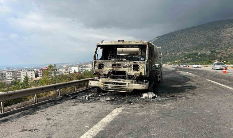 Hatay’da seyir halindeyken yanmaya başlayan beton mikseri alevlere teslim oldu.