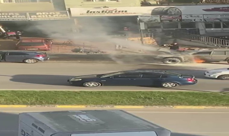 Olay Adnan Menderes Bulvarında meydana geldi. A.A. idaresindeki 78 AAD 001 plakalı cip, seyir halindeyken henüz bilinmeyen bir nedenle motor bölümünden alev aldı.