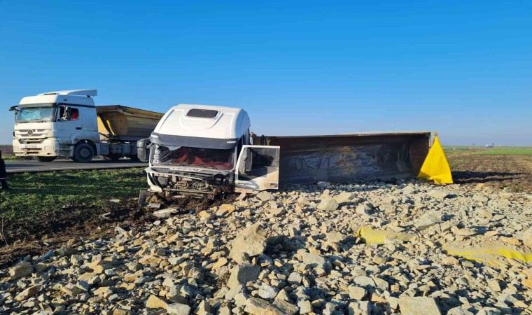 Kırklareli Lüleburgaz’da meydana gelen trafik kazasında bir sürücü kullandığı kamyonu devirdi.