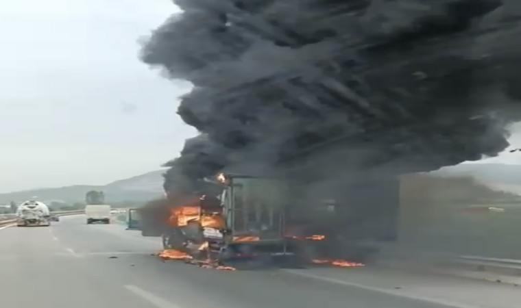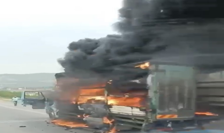 Bursa’da seyir halindeki bir kamyonet alev alev yandı. O anlar trafikteki diğer sürücülerin kamerasına yansıdı