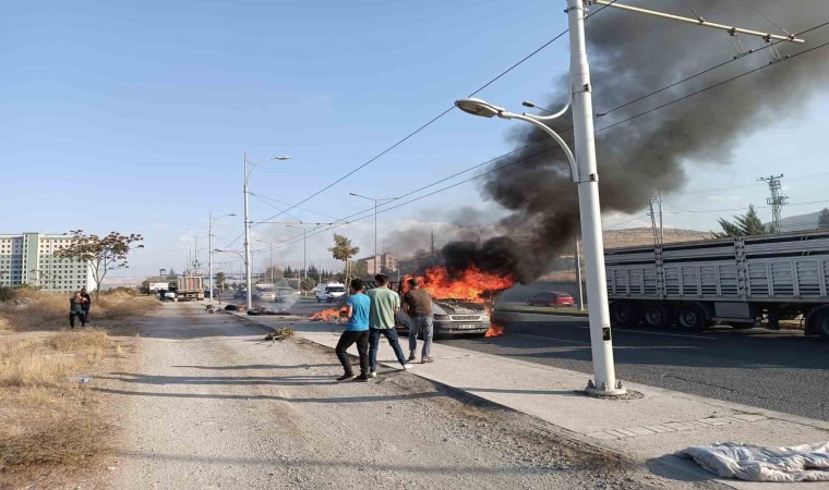 Paniğe neden olan yangında araç kullanılmaz hale gelirken, yangınla inceleme başlatıldı.