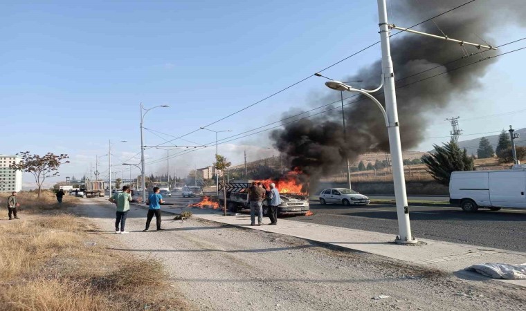 Olay, 14.15 sıralarında Malatya-Elazığ karayolu Kredi Yurtlar Kurumu (KYK) mevkiinde meydana geldi. Edinilen bilgilere kent merkezi istikametine seyir halinde olan bir kamyonetin kasasında henüz bilenmeyen bir nedenle çıkan yangın kısa sürede aracı sardı. İhbar üzerine olay yerine itfaiye ile sağlık ekipleri sevk edilirken, yangın itfaiye tarafından söndürüldü.