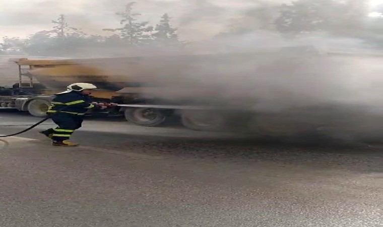 Karabük’te seyir halindeyken alev alan kamyonun lastiklerindeki yangını itfaiye ekipleri söndürdü.