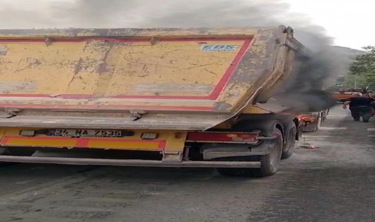 Olay, Öğlebeli Kavşağı’nda meydana geldi. Sürücüsü öğrenilemeyen 34 NA 7535 plakalı kamyonun lastikleri seyir halindeyken henüz bilinmeyen bir nedenle alev aldı. Durumun bildirilmesi üzerine olay yerine polis ve itfaiye ekipleri sevk edildi.