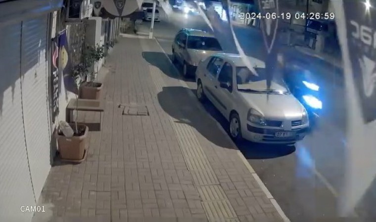 Antalya’nın Serik ilçesinde seyir halindeki motosikletli 3 kişi park halindeki araçları tekmeleyerek kayıplara karıştı. Araçlardan birinin aynasının parçalandığı olay anı güvenlik kamerası tarafından anbean kaydedildi.