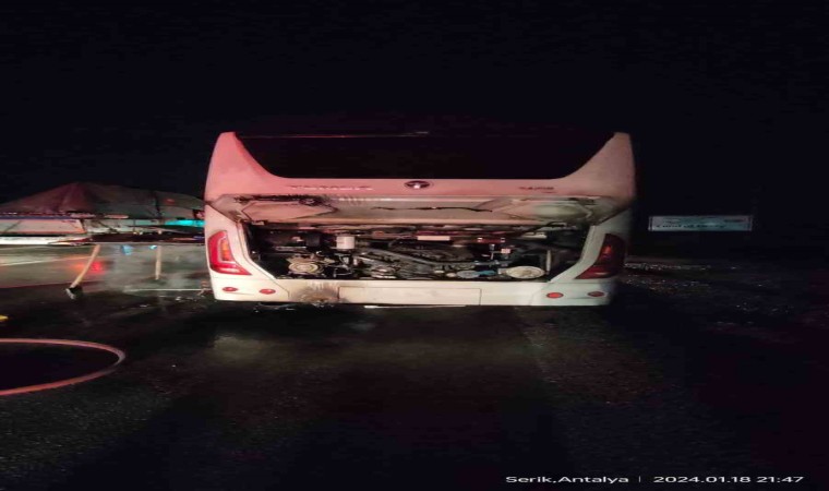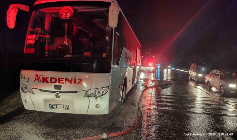 Antalya’nın Serik ilçesinde seyir halindeki otobüste çıkan yangın korku dolu anlar yaşanmasına neden oldu.