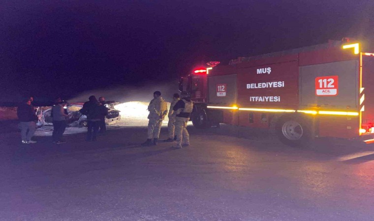 Muş’ta seyir halindeki bir otomobil aniden alev aldı. Araçtaki 4 kişi son anda canlarını kurtardı.