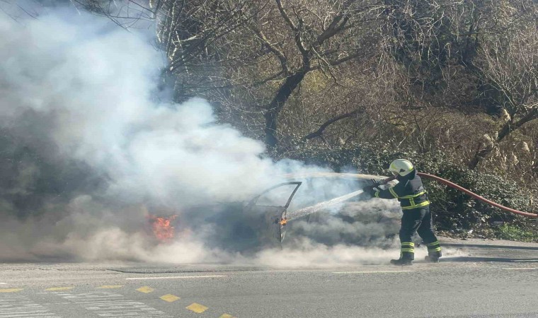 Bursa’nın Mudanya ilçesinde seyir halindeki bir otomobil alev alev yandı. Sürücüsünün son anda kurtulduğu yangın itfaiye ekipleri tarafından söndürüldü.